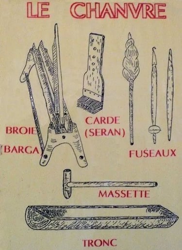 Par rouissage(macération), broyage et teillage les fibres longues de la tige(l'écorce) sont séparées puis le peignage permet aux fibres d'être tissées.