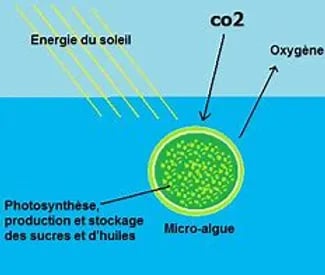 Les microalgues se multiplient grâce aux CO2 par photosynthèse.